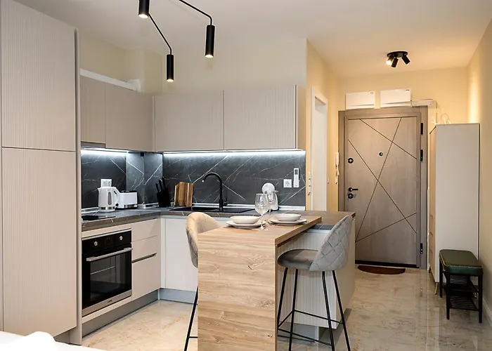 Stylish Studio With Balcony - Bella Vita, Varna By Flat Mаnаger dairesi, Tiça Stadyumu'a 6 km mesafedeki deniz manzarasına sahiptir. Daire, 1 yatak odası, 1 banyo odası ve tam donanımlı mutfaktan oluşur.